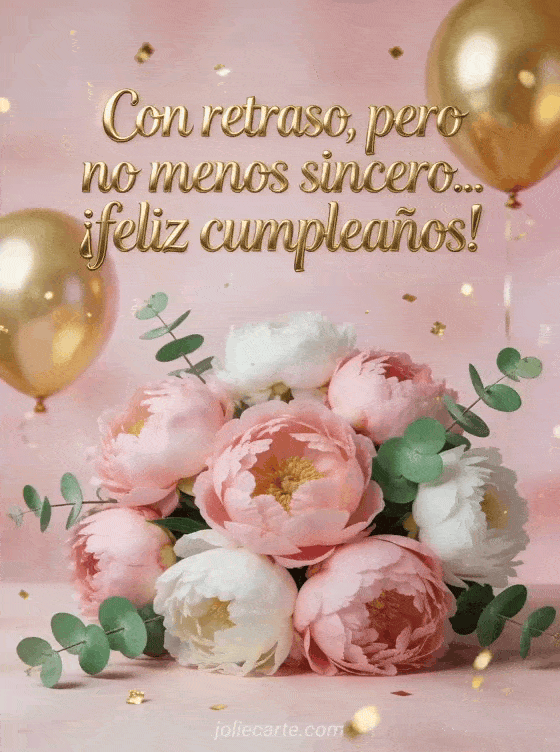 Discúlpate por un cumpleaños olvidado con esta elegante imagen de cumpleaños tarde llena de sinceridad y buenos deseos. Descubre también una tarjeta desear feliz cumpleaños tarde, una tarjeta feliz cumpleaños tarde gato o un gif feliz cumpleaños con retraso.