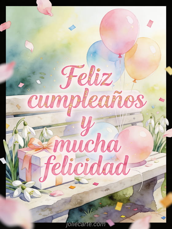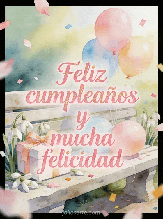 Comparte un deseo suave de cumpleaños con letras de acuarela rosadas, brillo dorado, campanillas de invierno, una caja de regalo con lazo, globos pastel y luz fresca de la mañana. También pueden enviar un feliz cumpleaños mamá gif animado, un gif animado feliz cumpleaños mamá gif o un feliz cumpleaños suegra texto.