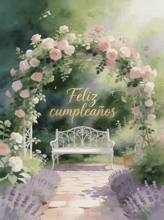 Envía una espectacular imagen de feliz cumpleaños para una mujer con un romántico jardín inglés en primavera. Descubre también un gif feliz cumpleaños mujer o feliz cumpleaños mujer humor.