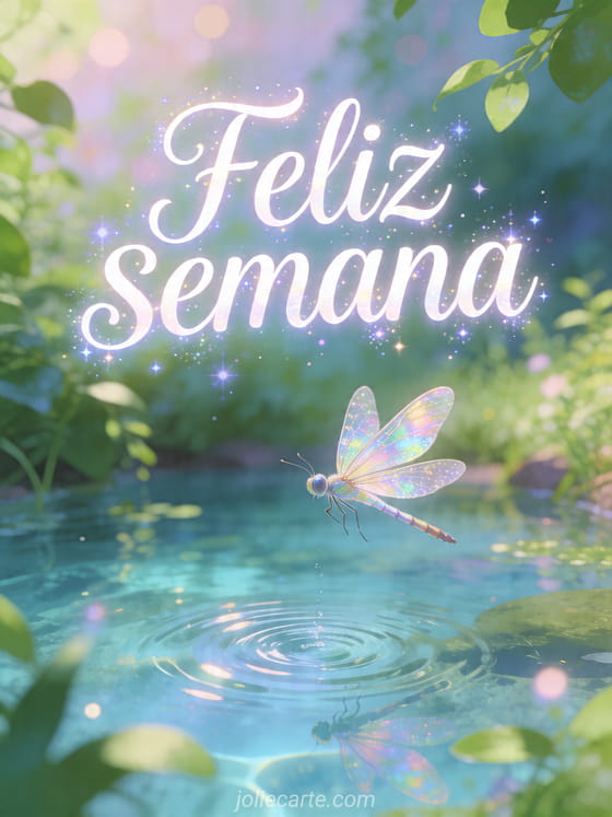 Comparte un mágico deseo de feliz semana con esta tarjeta de libélula de cuento. Descubre también feliz semana a todos humor, que tengas una linda semana o hola buena semana humor.