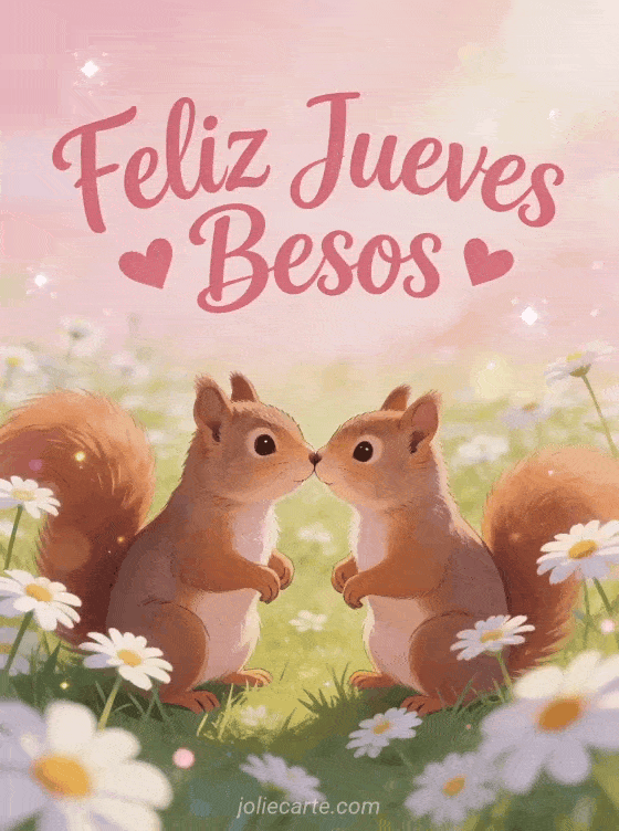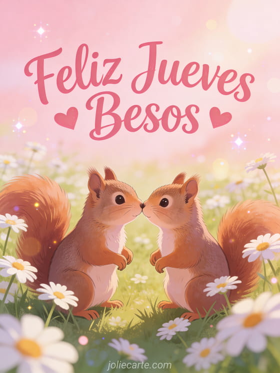 Imagen gratis feliz jueves besos una tierna imagen de feliz jueves con ardillas dándose un besito