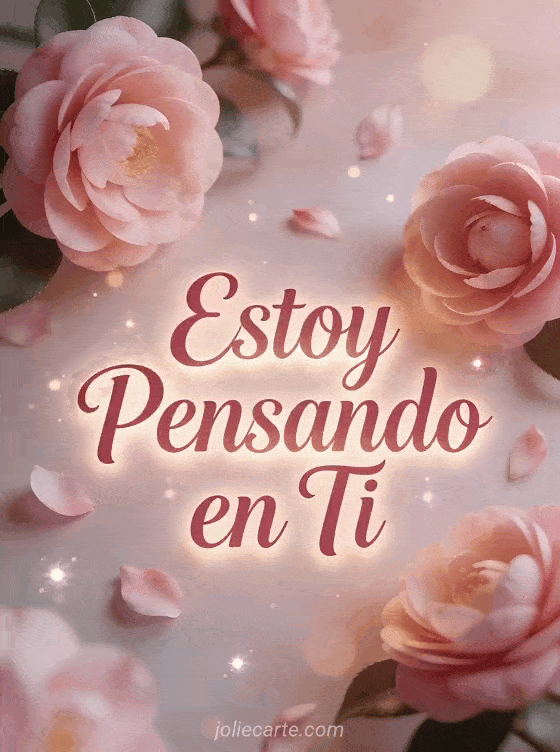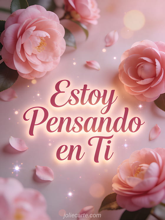 Comparte esta tierna tarjeta con suaves camelias rosas para alguien en quien estás pensando. Descubre también una tarjeta me duermo pensando en ti o una tarjeta pienso en ti de día sueño contigo de noche.