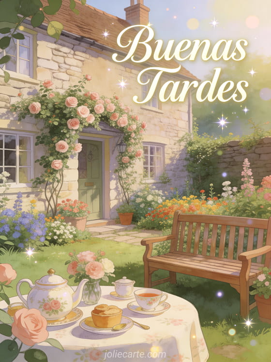 Comparte una imagen de buenas tardes con esta encantadora tarjeta de jardín campestre. Descubre también una imagen buenas tardes mi amor o una imagen buenas tardes muchos besos.