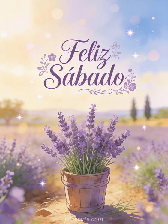 Alegra el sábado de alguien con esta hermosa tarjeta de lavanda. Descubre también una tarjeta buenos días soleado feliz sábado café o una tarjeta feliz sábado gato.