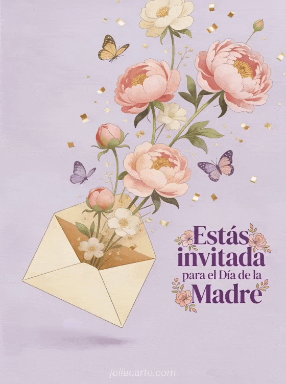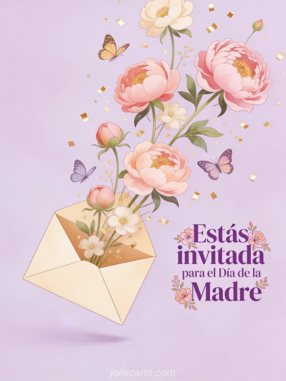 Comparte esta invitación festiva del día de la madre para anunciar una celebración alegre. También puedes ver tarjeta feliz día de la madre, palabras dulces día de la madre y tarjeta de invitación día de la madre.