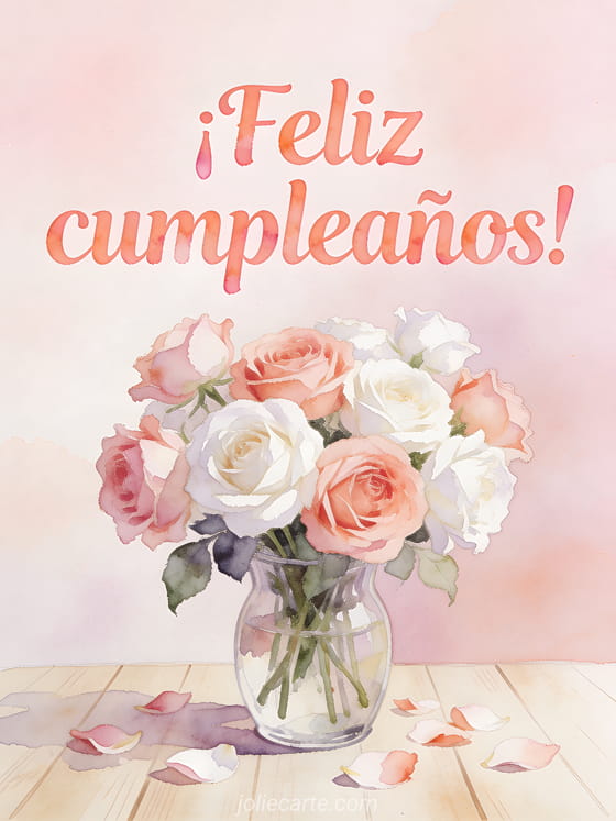 JolieCarte cumpleaños animado una delicada tarjeta de cumpleaños animada con rosas en jarrón