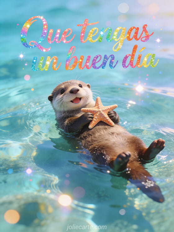 Desea a alguien un jueves maravilloso con este alegre saludo de nutria. Descubre también una tarjeta que tengas un buen día feliz jueves o una tarjeta buen jueves sol.