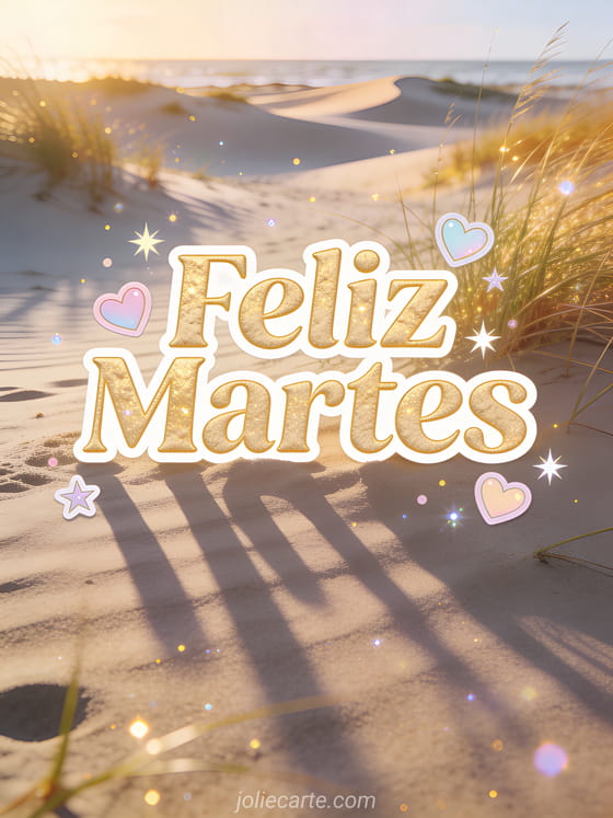 Desea a alguien un feliz martes con esta hermosa tarjeta inspirada en la playa. También pueden interesarle una linda tarjeta virtual gratis feliz martes o un feliz martes soleado gif para más saludos alegres de martes.