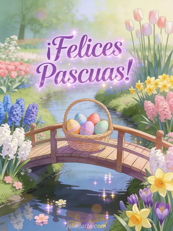 Envía una linda tarjeta de Pascua con jacinto, narciso y tulipán en el Keukenhof. Descubre también una tarjeta virtual Pascua o un texto tarjeta felicitación Pascua.