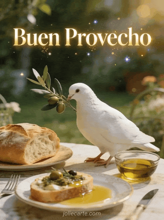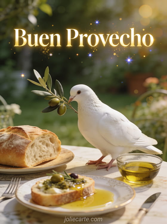 Mensaje buen provecho un sereno mensaje de buen provecho con una paloma blanca y rama de olivo