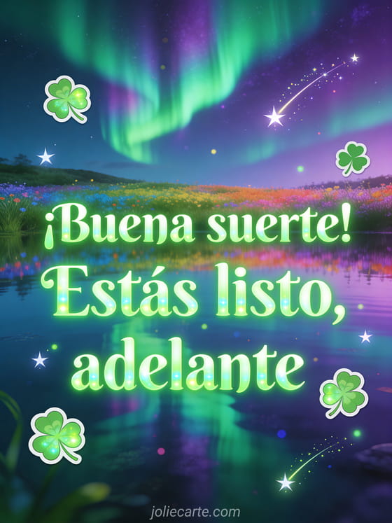Comparte esta mágica tarjeta de aurora boreal para animar a alguien antes de su entrevista de trabajo. Descubre también una tarjeta animada buena suerte o un mensaje buena suerte concurso.