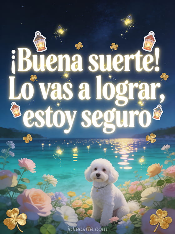 Comparte esta mágica tarjeta nocturna para animar a un colega y mostrarle que confías en él. Descubre también un mensaje buena suerte entrevista de trabajo o una tarjeta animada buena suerte.