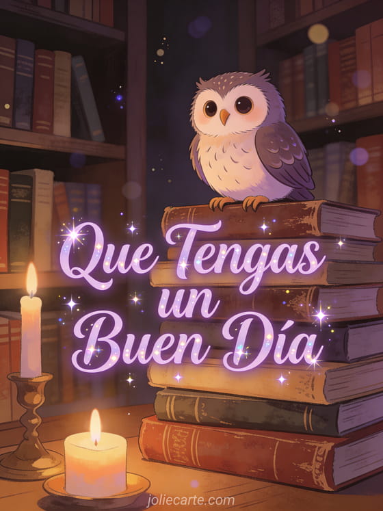Comparte un mágico saludo de buenos días con esta tarjeta de búho y vela de buen día. Descubre también una tarjeta buen día y mucho ánimo o una tarjeta café buenos días buen día.