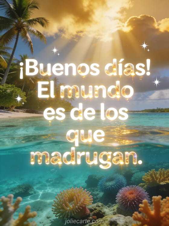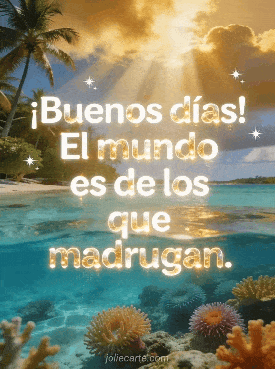 Envía un radiante y motivador mensaje de buenos días para empezar el día con energía. Descubre también una tarjeta mensaje buenos días a mi amor, una tarjeta hola gifs o una tarjeta buenos días tierno.
