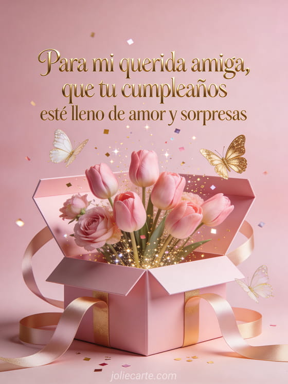 Comparte un mensaje de cumpleaños para tu amiga y haz que su día sea inolvidable con una tarjeta tierna y festiva. También pueden gustarte cita cumpleaños amistad, cumpleaños amistad mujer imagen y feliz cumpleaños amiga lejos.