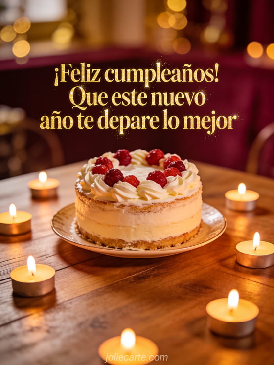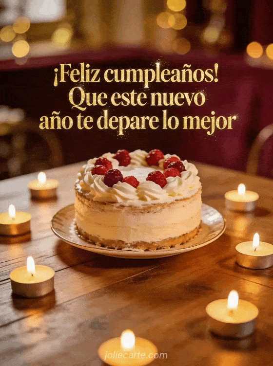 Envía un mensaje de cumpleaños emotivo con una tarjeta elegante de pastel, frutos rojos y brillo suave de velas en tonos cálidos. Descubre también mensaje cumpleaños sms, enviar un mensaje de cumpleaños y mensaje de feliz cumpleaños.