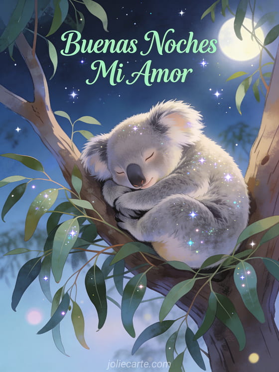 Buenas Noches Mi Amor una apacible tarjeta de buenas noches con un koala dormido