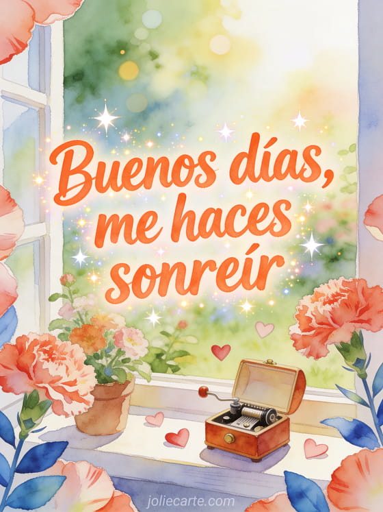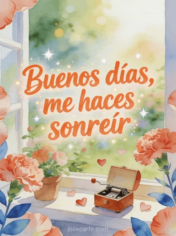 Envía un alegre mensaje de buenos días para tu crush con letras coral en acuarela, claveles, una pequeña caja de música y confeti en forma de corazón. Descubran también mensaje de buenos días para mi hermosa, buenos días besos o mensaje de buenos días para su esposa.