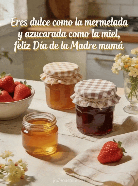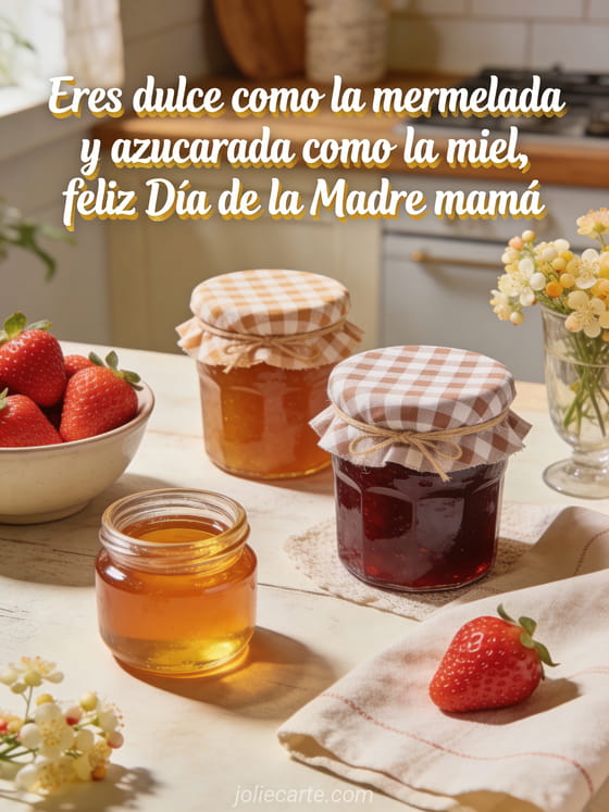 Eres dulce como la mermelada y azucarada como la miel, feliz Día de la Madre mamá un mensaje dulce y cálido para celebrar a mamá