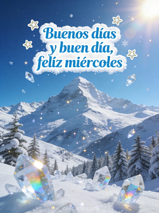 Desea a alguien buenos días y un hermoso miércoles con esta impresionante tarjeta de inspiración alpina. También pueden interesarle un feliz miércoles y buen día gif o un mensaje feliz miércoles para más saludos alegres de miércoles.