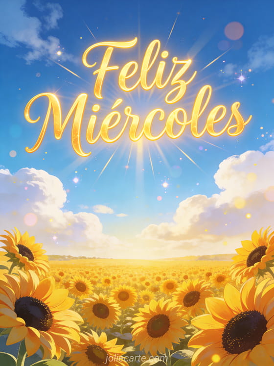 Ilumina el miércoles de alguien con esta radiante tarjeta del campo de girasoles. Descubre también una tarjeta fotos feliz miércoles o una tarjeta feliz miércoles enero.
