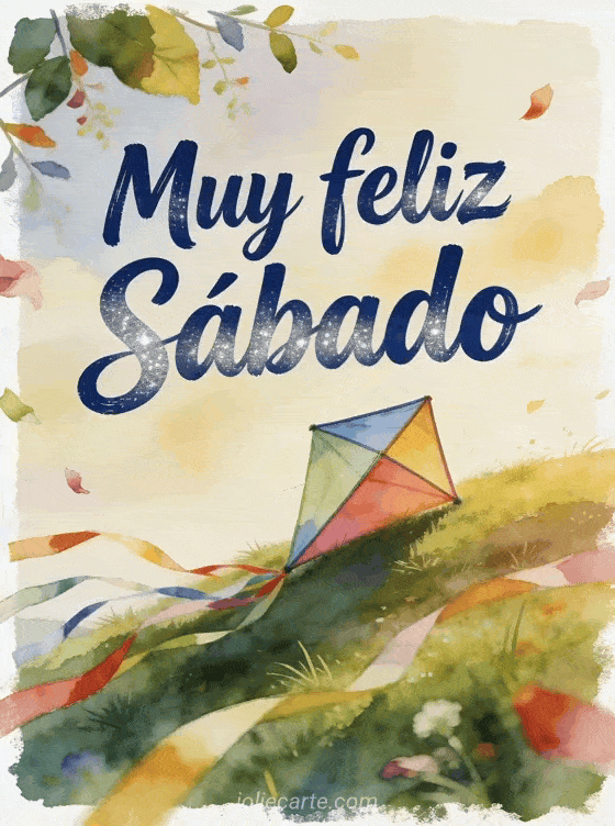 Lleva energía de fin de semana con una cometa en acuarela apoyada en una colina verde, cintas al viento, hojas silvestres, pétalos y luz dorada clara. Descubre también imágenes gratis feliz sábado y buen fin de semana, feliz sábado y fin de semana imagen o feliz sábado flores imágenes.