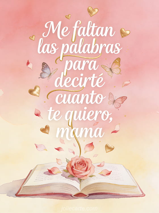 Expresa todo tu amor con esta hermosa tarjeta del Día de la Madre. Las palabras se transforman en mariposas y pétalos de rosa en una ilustración poética y conmovedora que hará que tu mamá se sienta especial.