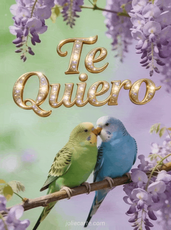 Envía esta encantadora tarjeta gif con dos periquitos enamorados para expresar tu amor. Descubre también un gif te amo o una imagen te amo.