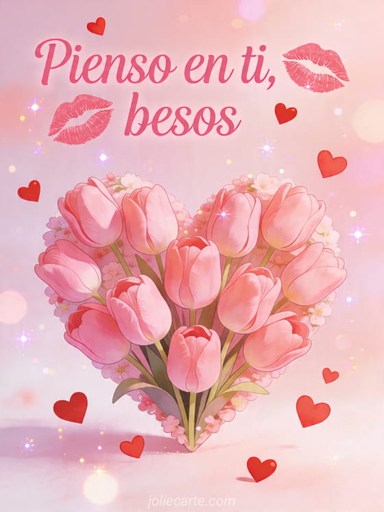 Pienso en ti, besos un mensaje romántico y tierno lleno de cariño