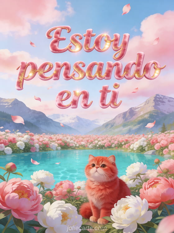 Pienso en ti con una rosa una tarjeta tierna de pienso en ti con peonías y un gato