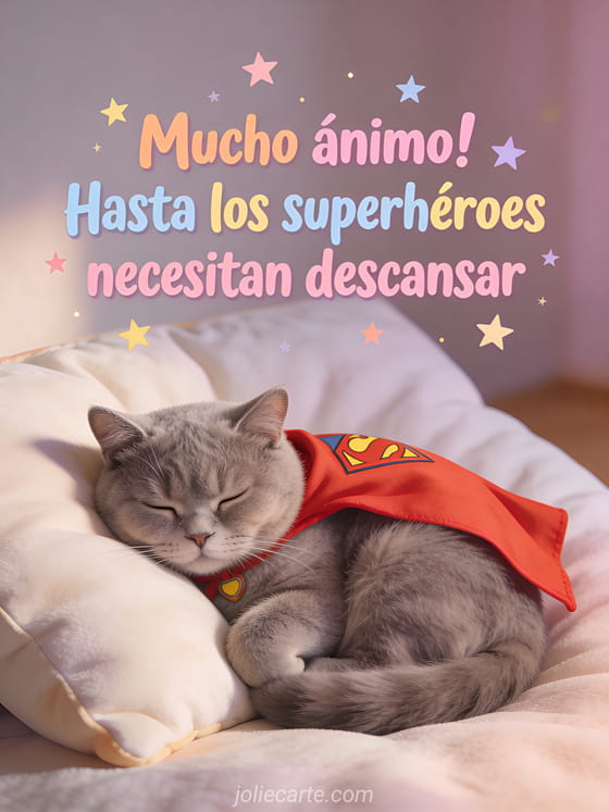 Mucho ánimo! Hasta los superhéroes necesitan descansar un lindo y divertido mensaje para quien necesita descansar