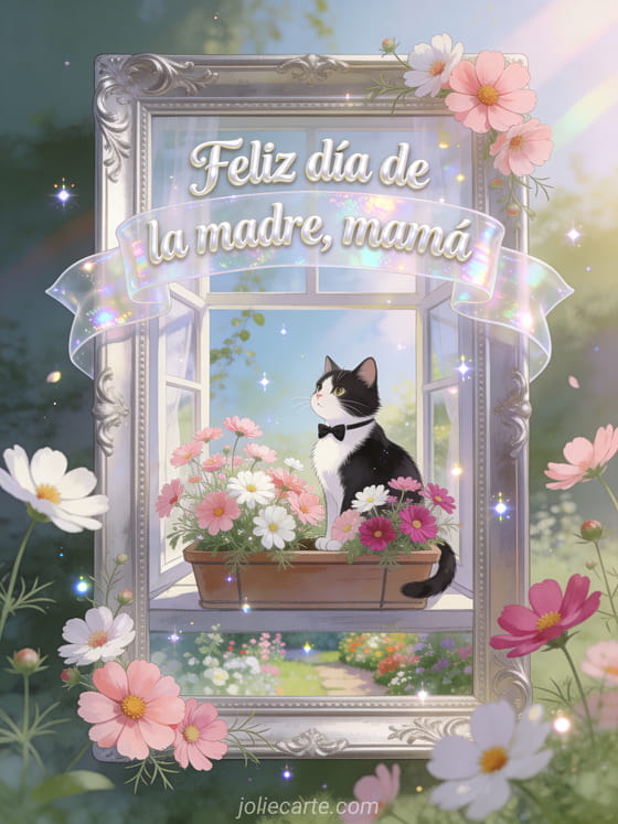 Celebra a mamá con esta tarjeta tierna del Día de la Madre en un ambiente de jardín encantador. Descubran también deseo para el día de la madre para mi hija, pensamiento día de la madre y tarjeta día de la madre texto.