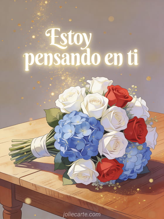 Comparte esta preciosa tarjeta con ramo de flores y el mensaje "Estoy pensando en ti" para alegrar el día a alguien especial. Descubre también una tarjeta esta noche pienso en ti o imágenes animadas pienso en ti.