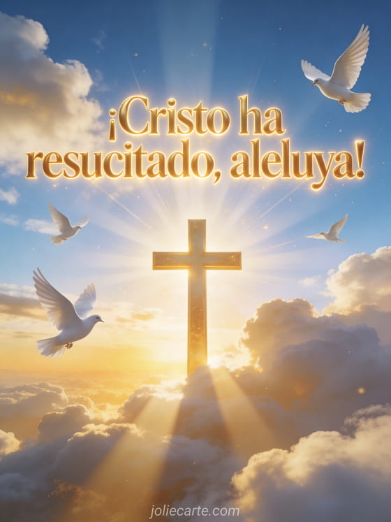 Comparte esta hermosa tarjeta de resurrección de Pascua y celebra el verdadero significado de la festividad. Descubre también una tarjeta de pascua religiosa o un mensaje de Pascua cristiano.