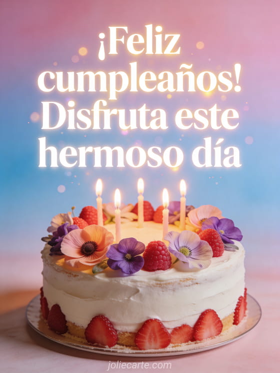 Comparte un sms feliz cumpleaños con una tarjeta refinada de pastel delicioso, velas y atmósfera pastel delicada. Descubre también feliz cumpleaños playa, feliz cumpleaños tranquilo y feliz cumpleaños con mascarilla coronavirus.