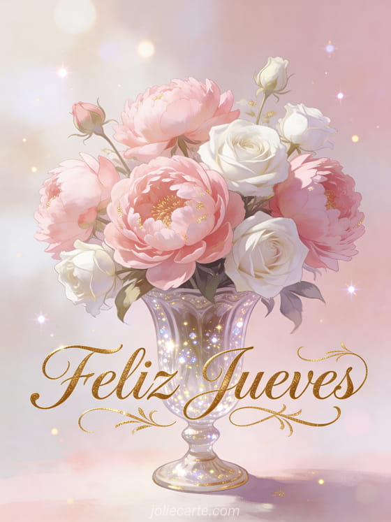 Tarjeta bonita feliz jueves una romántica y elegante tarjeta de feliz jueves con peonías rosas y rosas blancas