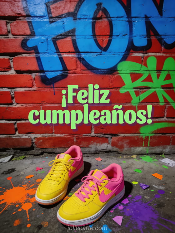 Envía este genial saludo de cumpleaños con estilo street art para celebrar el día especial de un adolescente. Descubre también un feliz cumpleaños para adolescente o un mensaje de cumpleaños para adolescente o una tarjeta de cumpleaños para adolescente con texto.
