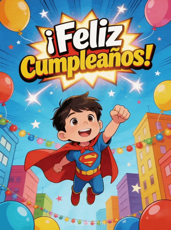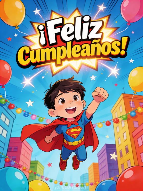 Envía una tarjeta de cumpleaños para el pequeño héroe y hazlo sentir especial. Descubre también una tarjeta video feliz cumpleaños bebé o una tarjeta cumpleaños fiesta niño.