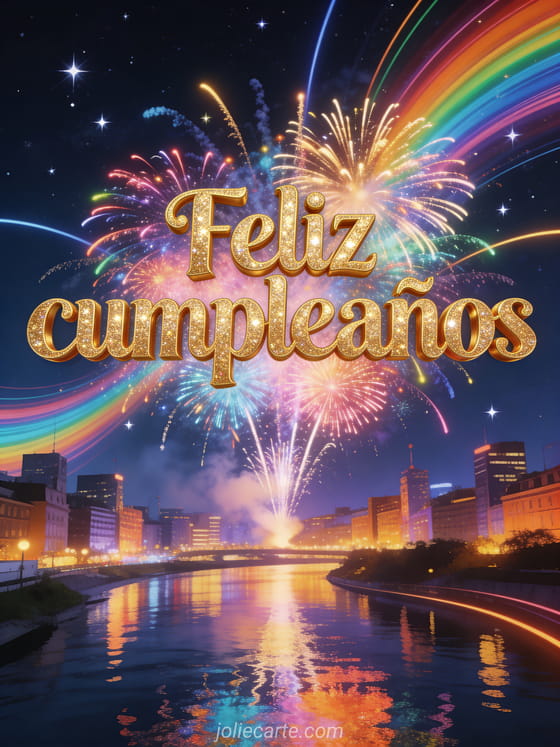 Celebra un espectacular cumpleaños con esta impresionante tarjeta con fuegos artificiales coloridos sobre una ciudad iluminada de noche. Descubre también una tarjeta cumpleaños con paisaje de montañas o una tarjeta cumpleaños disfruta cada momento o una tarjeta cumpleaños que seas feliz.