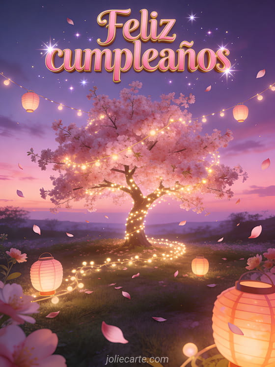 Envíen un mensaje soñado con esta tarjeta de cuento llena de linternas brillantes y flores de cerezo. También pueden descubrir feliz cumpleaños mi hermana del alma texto, feliz cumpleaños hermana mayor o feliz cumpleaños hermanita.