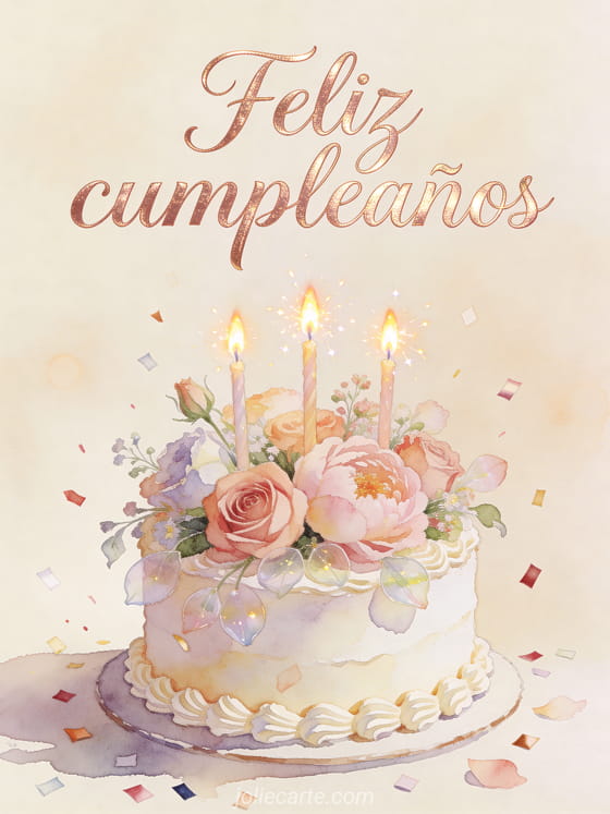 Compartan esta tarjeta de cumpleaños con un pastel decorado con flores y velas brillantes. También pueden ver imágenes feliz cumpleaños mujer gratis, glamour feliz cumpleaños mujer chic y buen cumpleaños mujer flores.