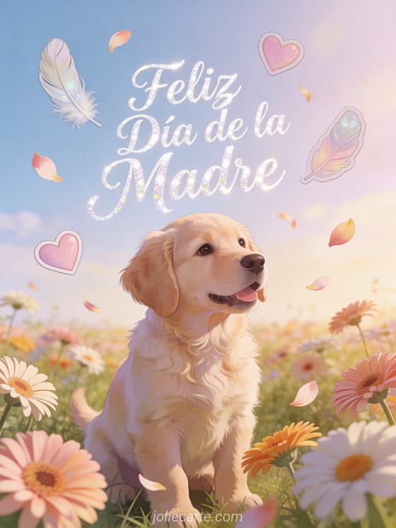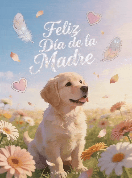 Sorprende a mamá con estas adorables tarjetas de feliz día de la madre con caligrafía nacarada y un cachorro labrador entre gerberas. Descubra también una tarjeta para el día de la madre o una tarjeta gratis feliz día de la madre.