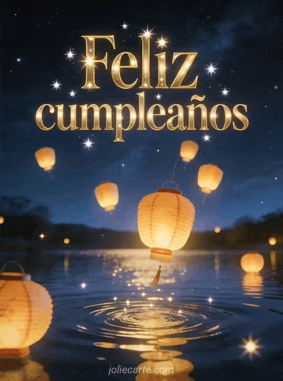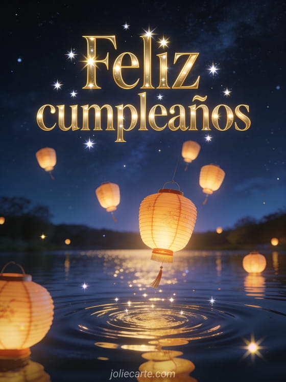 Compartan un deseo de cumpleaños soñado con esta escena fotorrealista de linternas flotantes, reflejos en el lago y cielo estrellado. También pueden descubrir feliz cumpleaños gato tierno, feliz cumpleaños gif gratis y feliz cumpleaños gato gif.