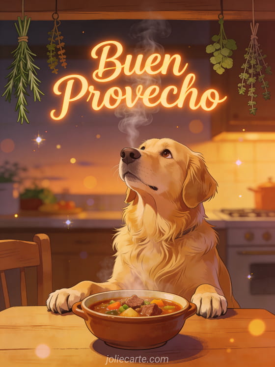 Envía este cálido deseo de buen provecho y haz que cada comida sea un momento acogedor. Descubre también una tarjeta de buen provecho divertida o una tarjeta de buen provecho con imágenes.