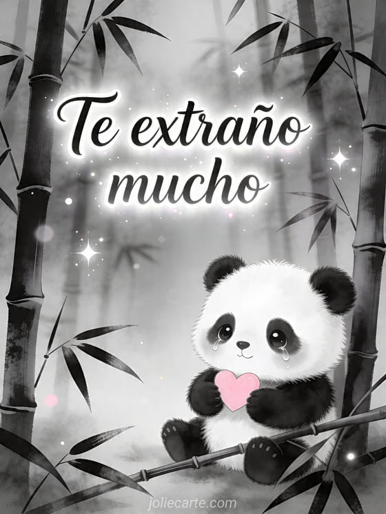 Comparte tu ausencia con esta tarjeta tierna y adorable de panda. También encontrarán cita divertida te extraño, cita te extraño mi amor o mensaje te extraño mi amor.
