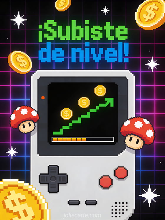 ¡Subiste de nivel! una tarjeta de cumpleaños estilo retro gaming