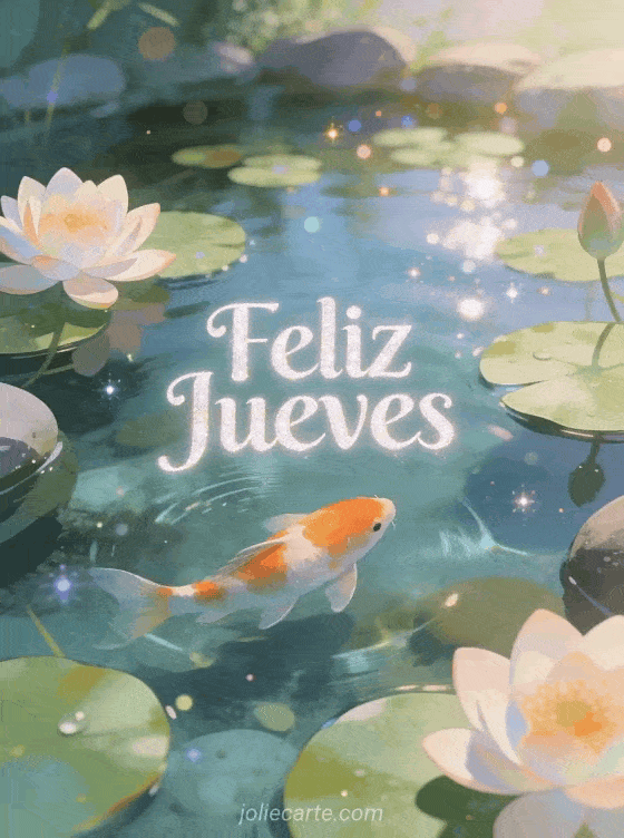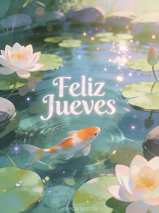 Comparte vibraciones zen de jueves con este tranquilo saludo del estanque koi. Descubre también una tarjeta imágenes gratis feliz jueves besos o una tarjeta buen jueves corazón.