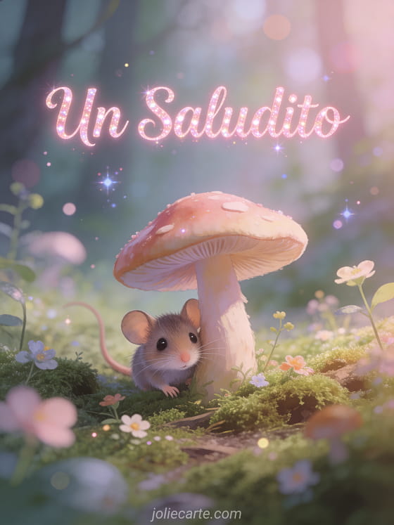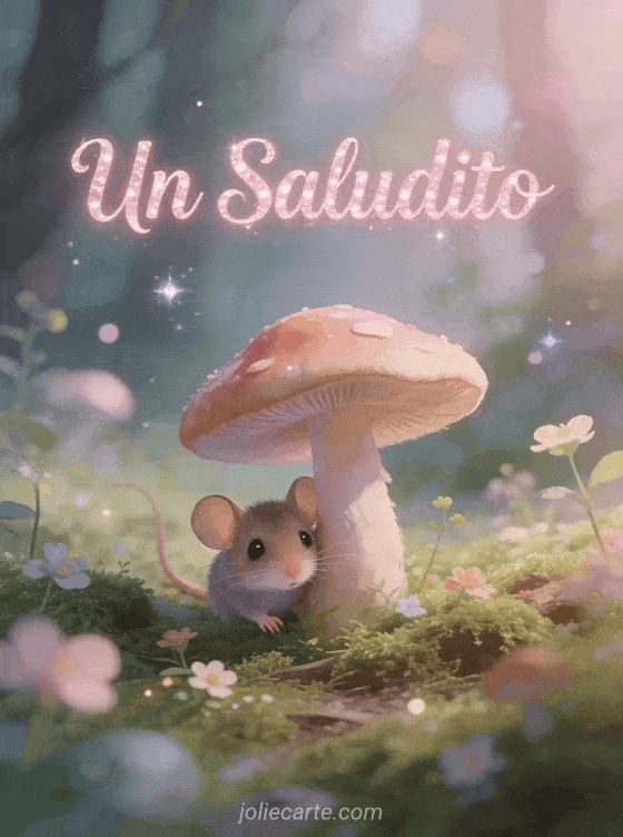 Un saludito un lindo saludito con un ratoncito en un bosque encantado