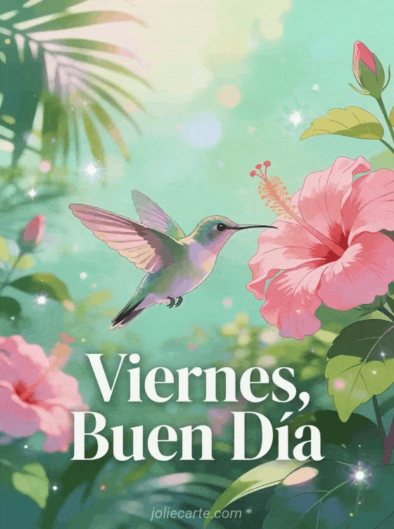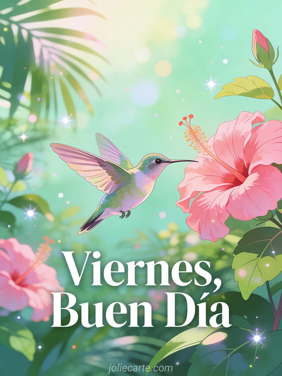 Desea a alguien un maravilloso viernes con esta hermosa tarjeta tropical de colibrí. Descubre también una tarjeta que tengas un buen viernes o una tarjeta imagen gratis feliz viernes.