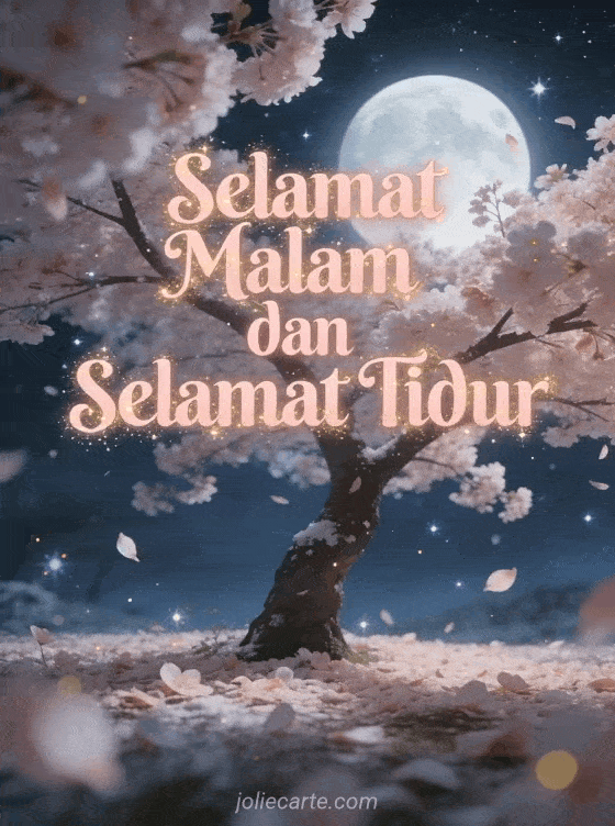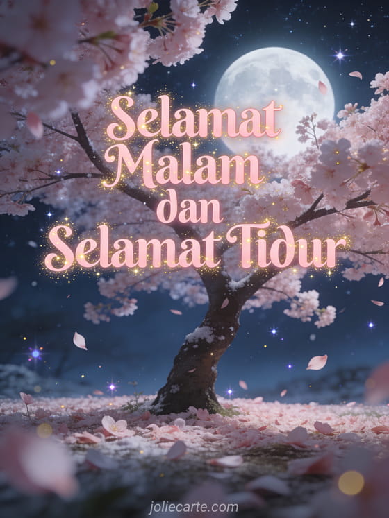 Selamat Malam dan Selamat Tidur ucapan romantis di bawah pohon sakura yang bermekaran
